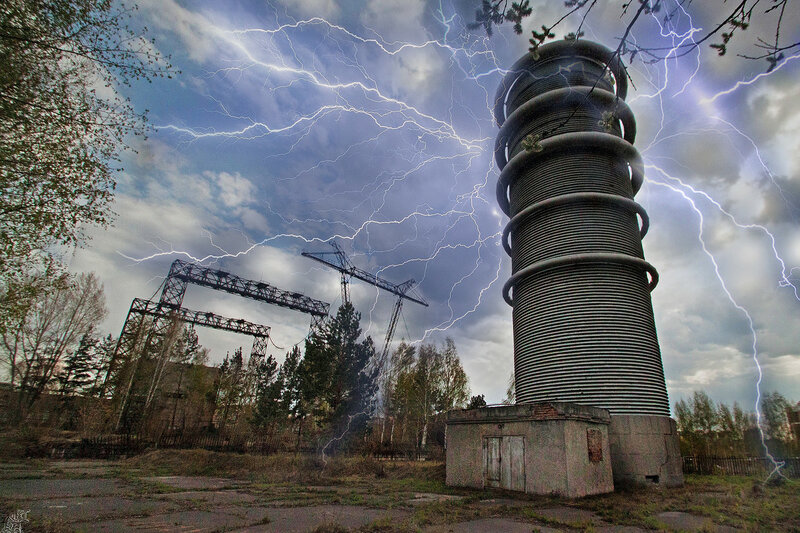В кадре генератор импульсных напряжений,стоит на высоковольтном испытательном стенде СибНИИЭ. Снимали с Выборной,допустим 139.