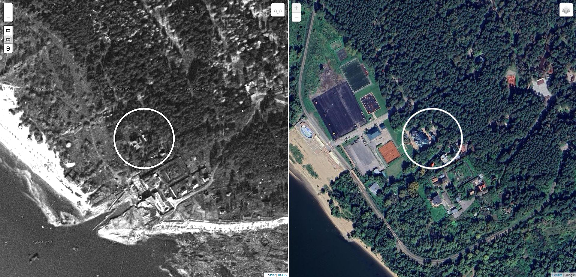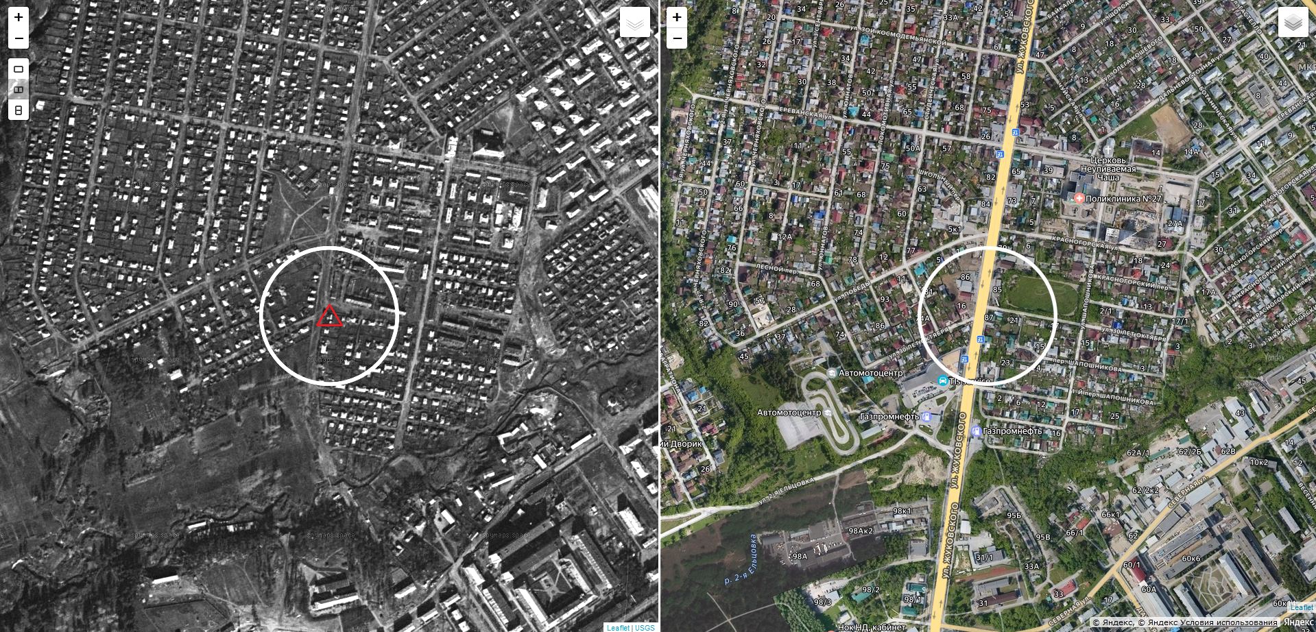 Если что, то вычисленное мной место кордона Ганюшка, полученное путём совмещения карт и космоснимков, получается точно вот в этом месте - в центре круга (левая картинка).