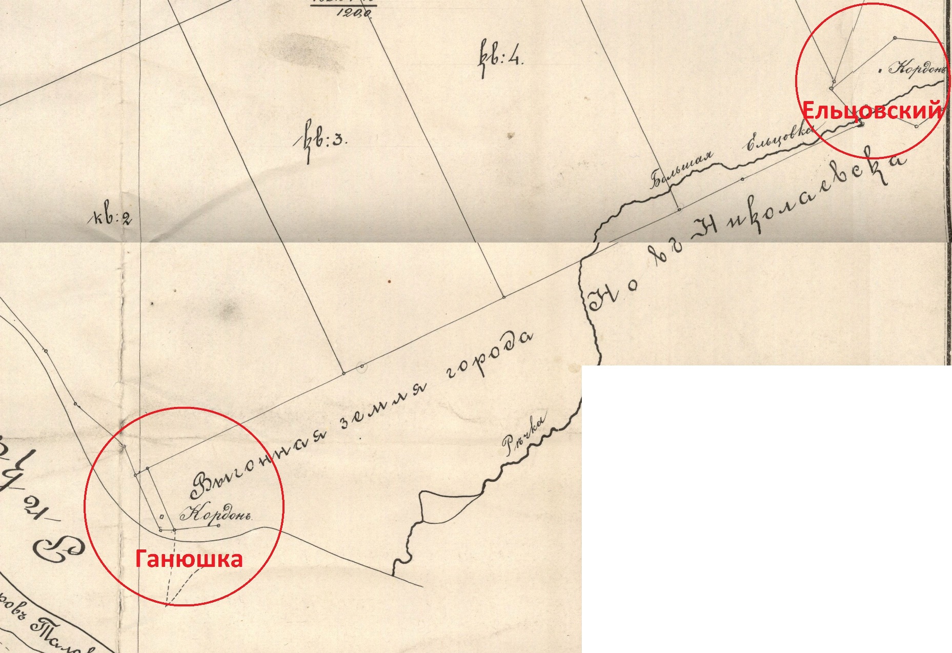 А где, вы предполагаете, был кордон «Ганюшка»? И чей? В 1909 лесные кордоны сильно ближе второй Ельцовки к городу были, ориентировочно на месте Ройал парка, рядом с Нобелем и по этой же «параллели».