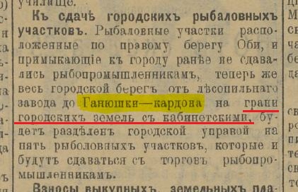 Просто я как-то в архиве Томска встретил дело 1909-го о проведении телефона до "Ганюшки", где был лесной кардон.