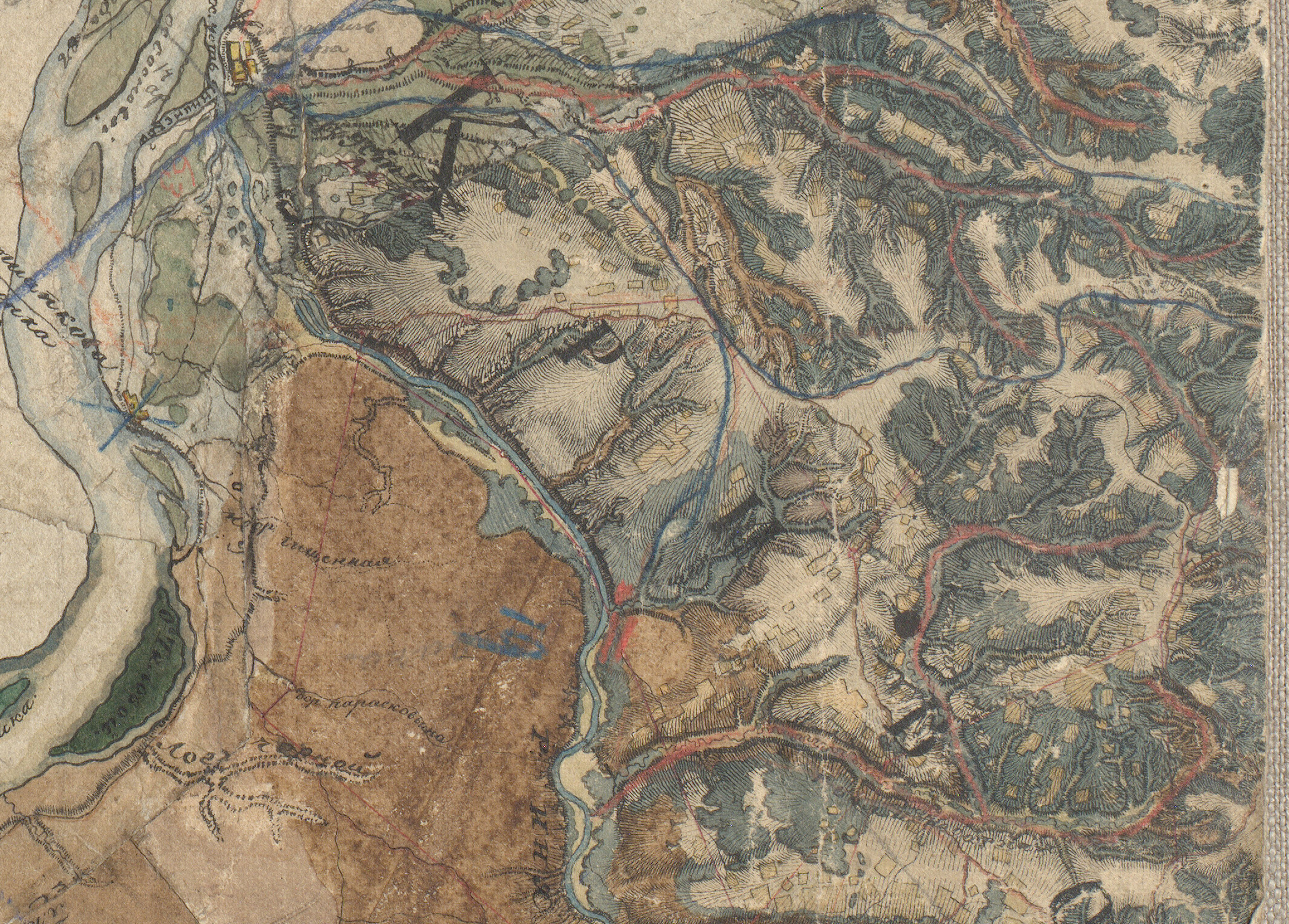 На карте в конце п.26 тонкими чёрными линиями прорисованы дороги, которые кто-то когда-то много лет спустя небрежно прорисовал сверху цветными карандашами.