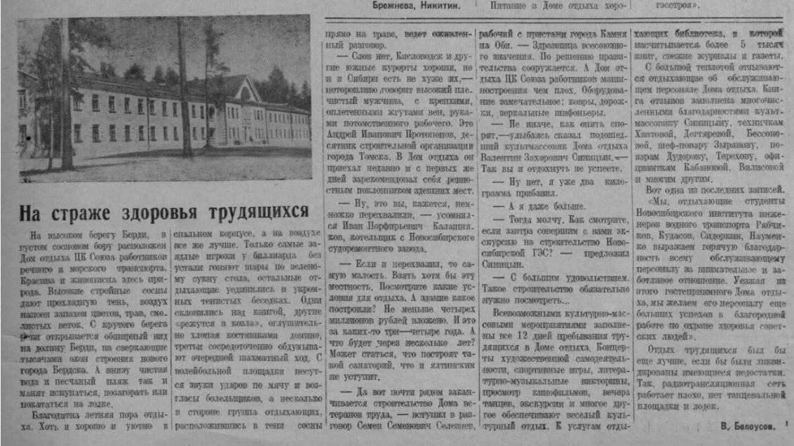 это ж Речкуновка. Однотипный санаторий? Или просто речкуновский санаторий к Бердску относился. В конце 56 уже Обь перекрыли - Бердск расселяли.