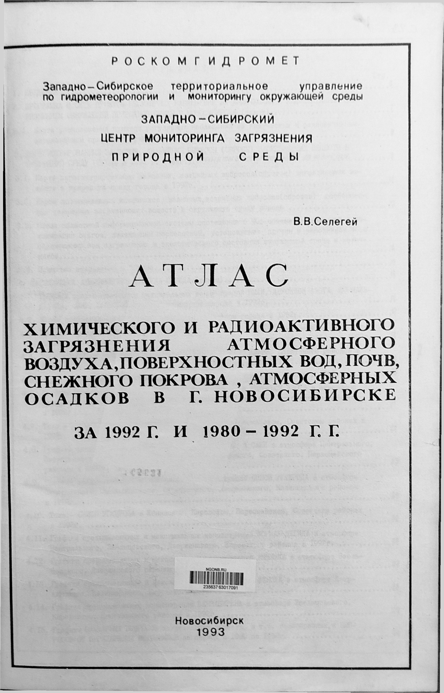 Селегей Валентин Васильевич_Атлас химич.и радиоакт.загрязнения атмосф.воздуха,поверхн.вод,почв,снежн.покрова,атмосф.осадков в г.Новосибирске за 1992г. и 1980–1992г.г._Новосибирск_РосКомГидроМет_Зап.-Сиб.Тер.Упр.по гидрометеорол.и мониторингу окр.среды_1993.pdf