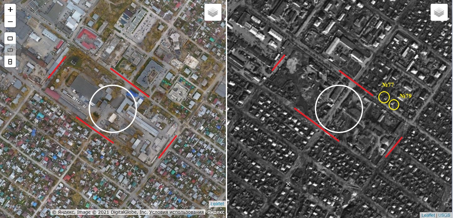 Но обратите внимание на дом, который обвёл красным, в углу квартала.