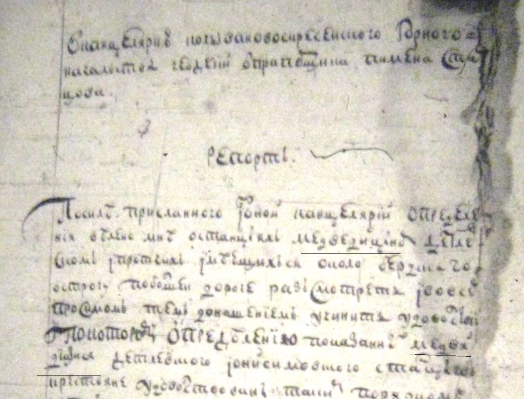 В двух подряд идущих репортах Пимен называет станец Медведицыным (л.8,12). В доношении крестьянина Тотьмина на следующем листе 13 - д. Медведицина.