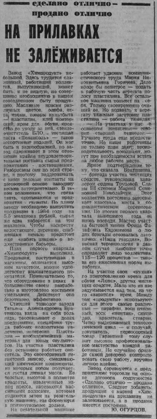 Такая же была на бутыльке силикатного конторского клея. Предприятие дожило до нулевых в виде ООО. На территории сейчас производят лаки и краски, но уже называется по-другому.