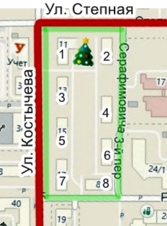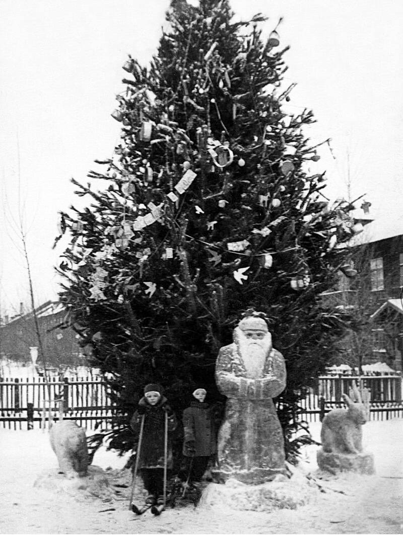 сейчас место, где ставилась эта ёлка в 1955 году выглядит иначе. стрелка указывает место установки ёлки.
