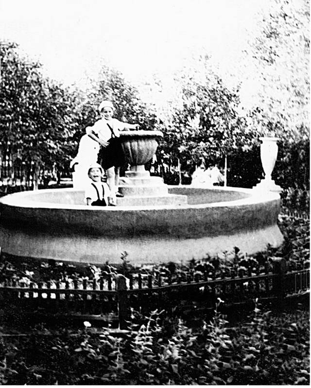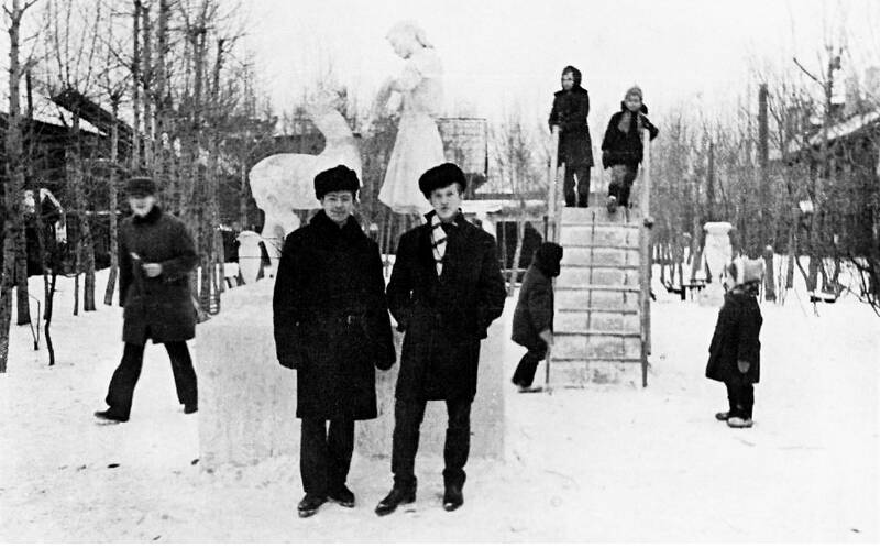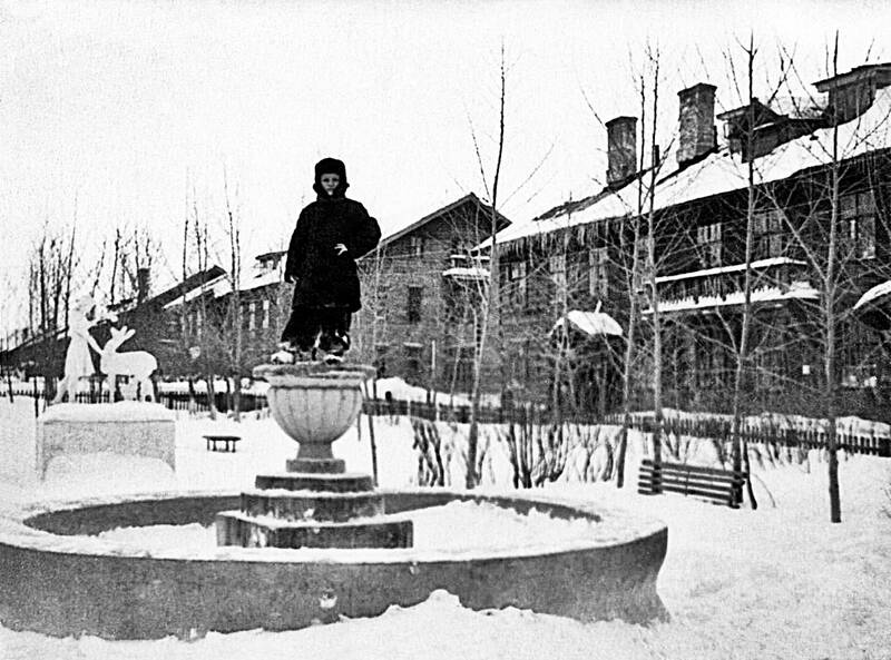 Фонтан этот находился там же на 68-м квартале во внутреннем сквере между домов. Но только ёлка стояла между домами 2-м и 1-м (в котором находился детский сад № 48), а вот фонтан стоял в центральной части сквера между домами 3-м и 4-м. Рядом с фонтаном стояли скульптуры- Девушка с ланью (она за мальчишками)