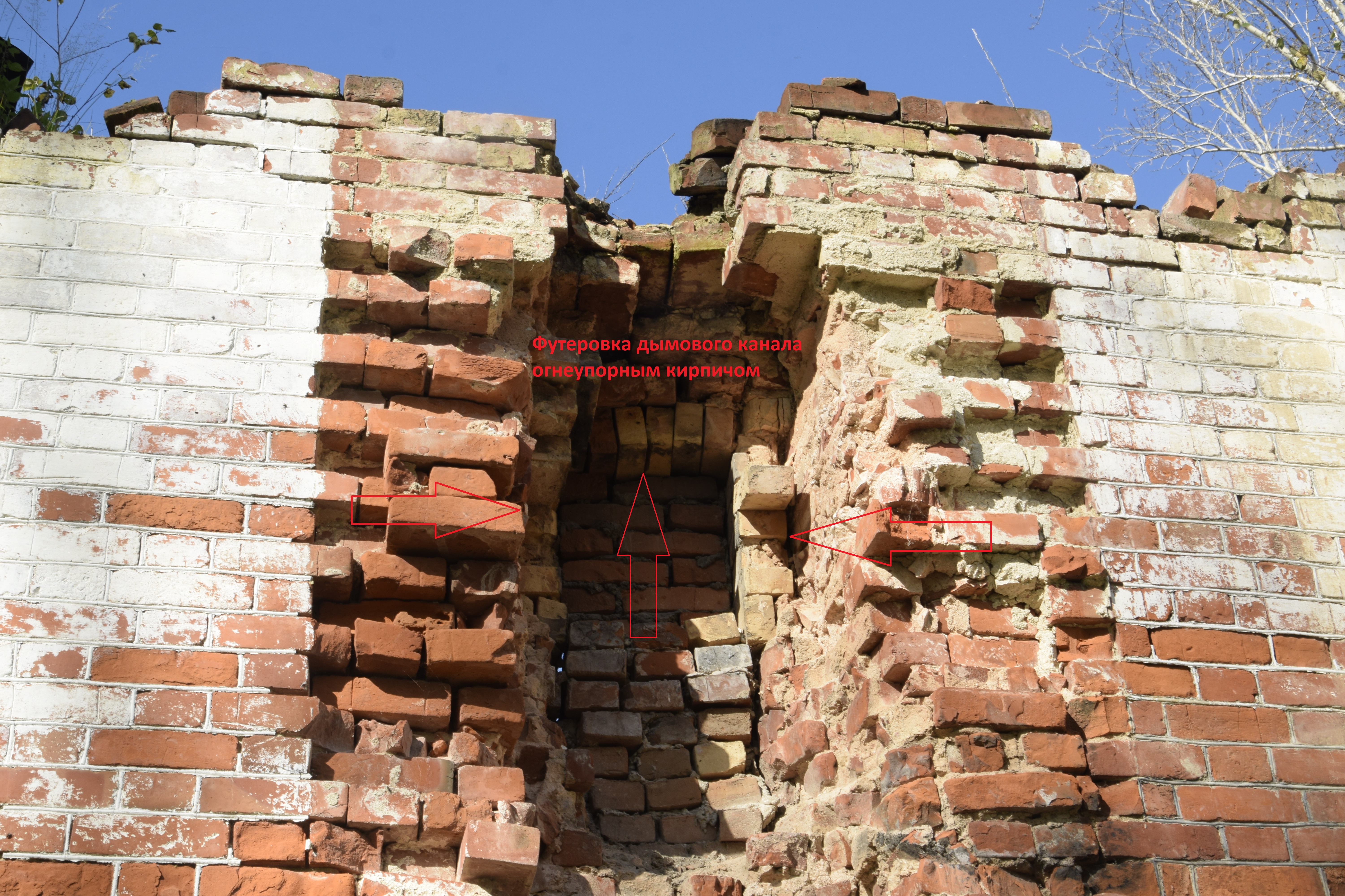 Внутри борова, подземных каналов и в нижней части трубы сделана футеровка огнеупорным кирпичом (см. на примере водокачки на ст.Ояш)