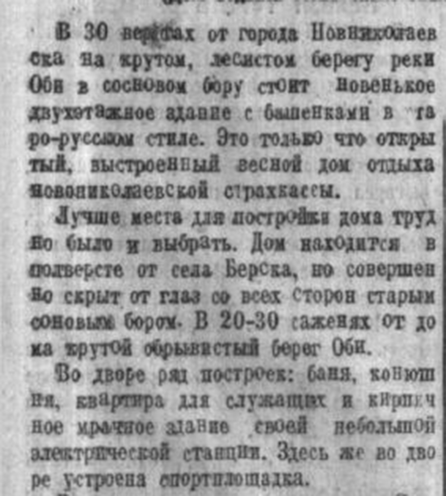 Автор первоначальное местоположение Бердского ДО (на берегу Оби) и последующее (на берегу Берди) как бы слила в одно. В результате написанная ею история вызывает вопросы.