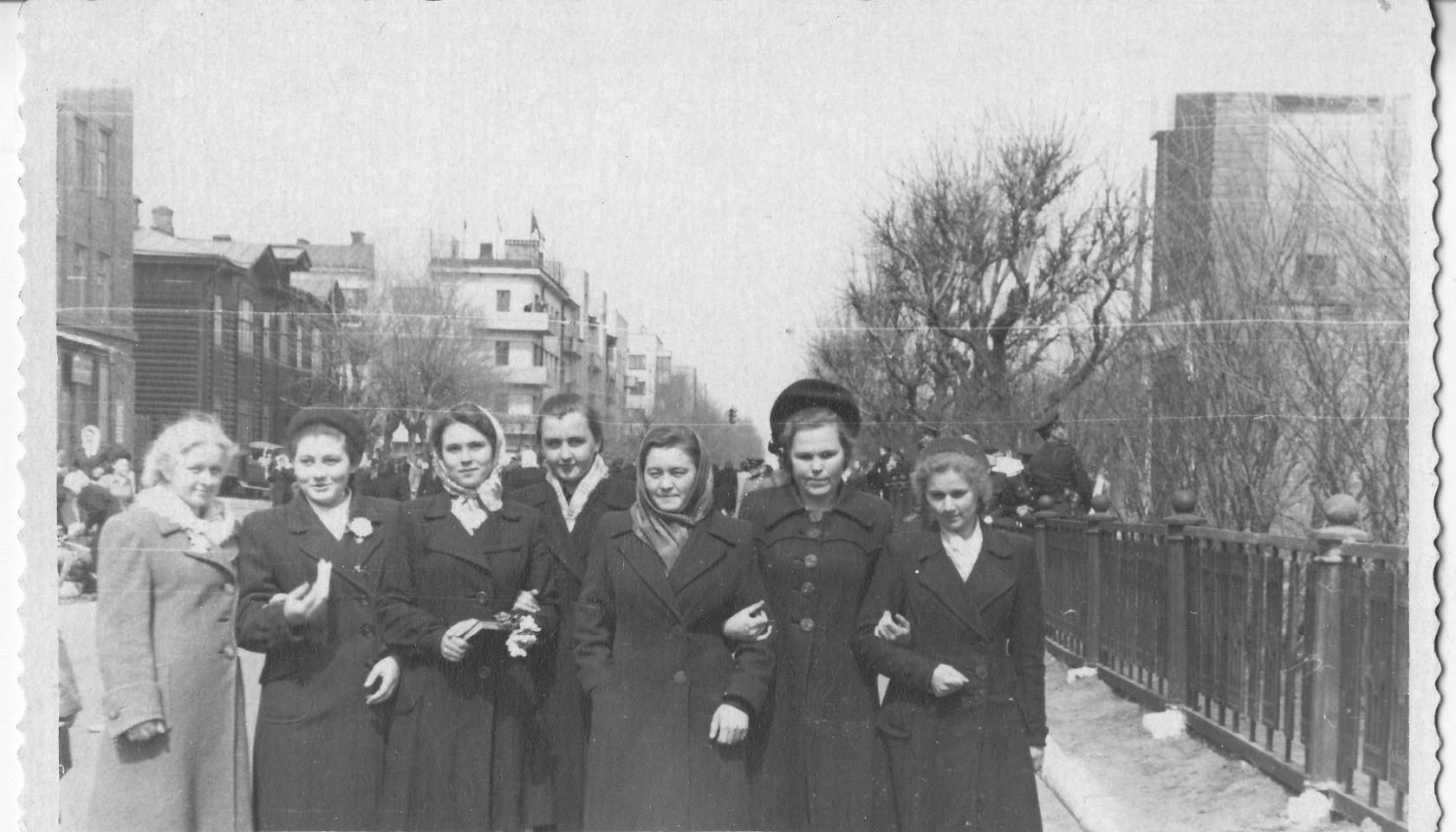 Улица Большевистская в районе строительства моста. 1 сентября 1952 год."