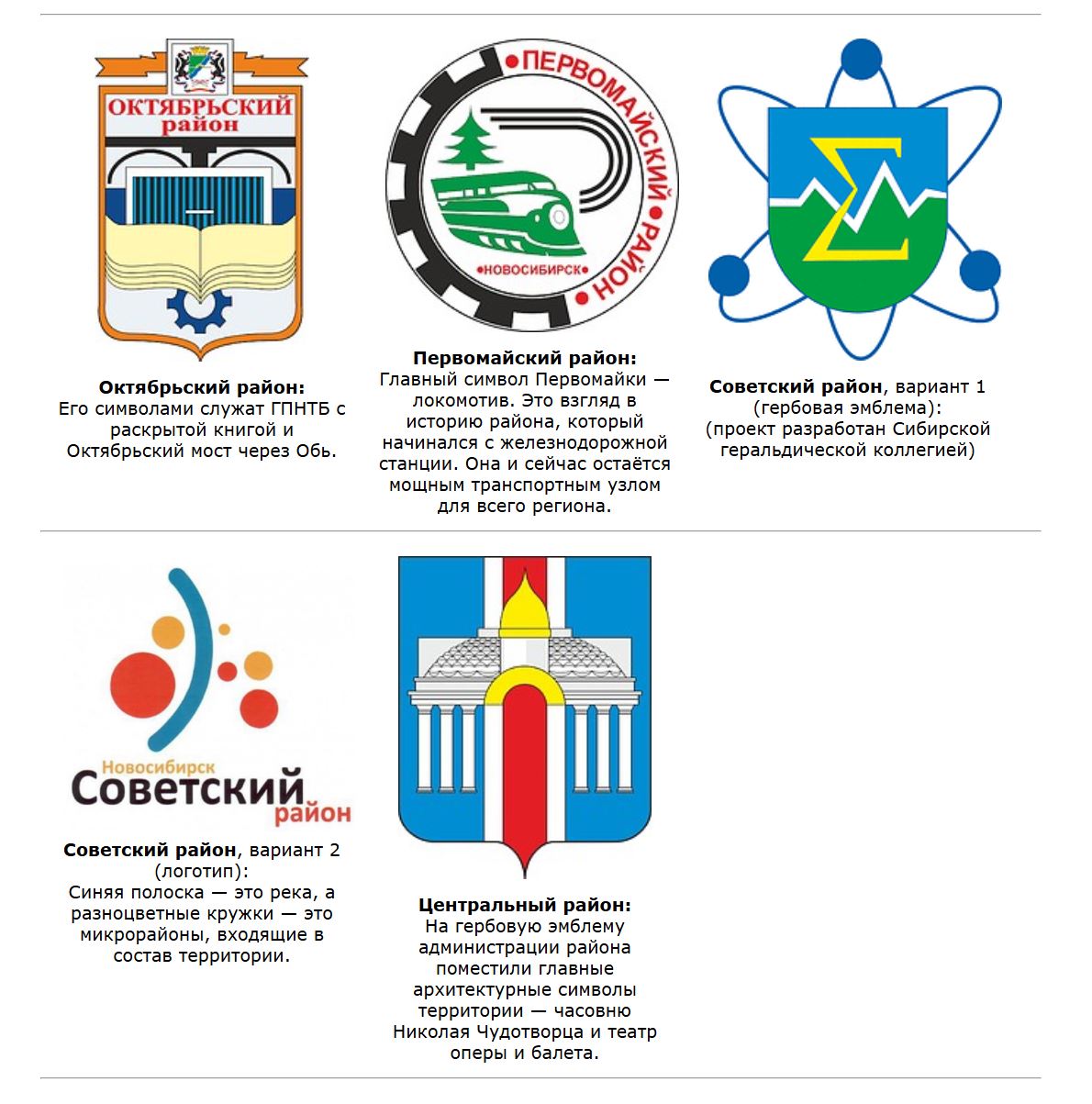 Однако, эта эмблема появилась недавно: "В 2004 году новосибирский геральдист А. Ю. Журавков предложил проект герба Советского района. В 2007 году этот проект был признан лучшим по результатам конкурса, но официально он так и не был утверждён."
