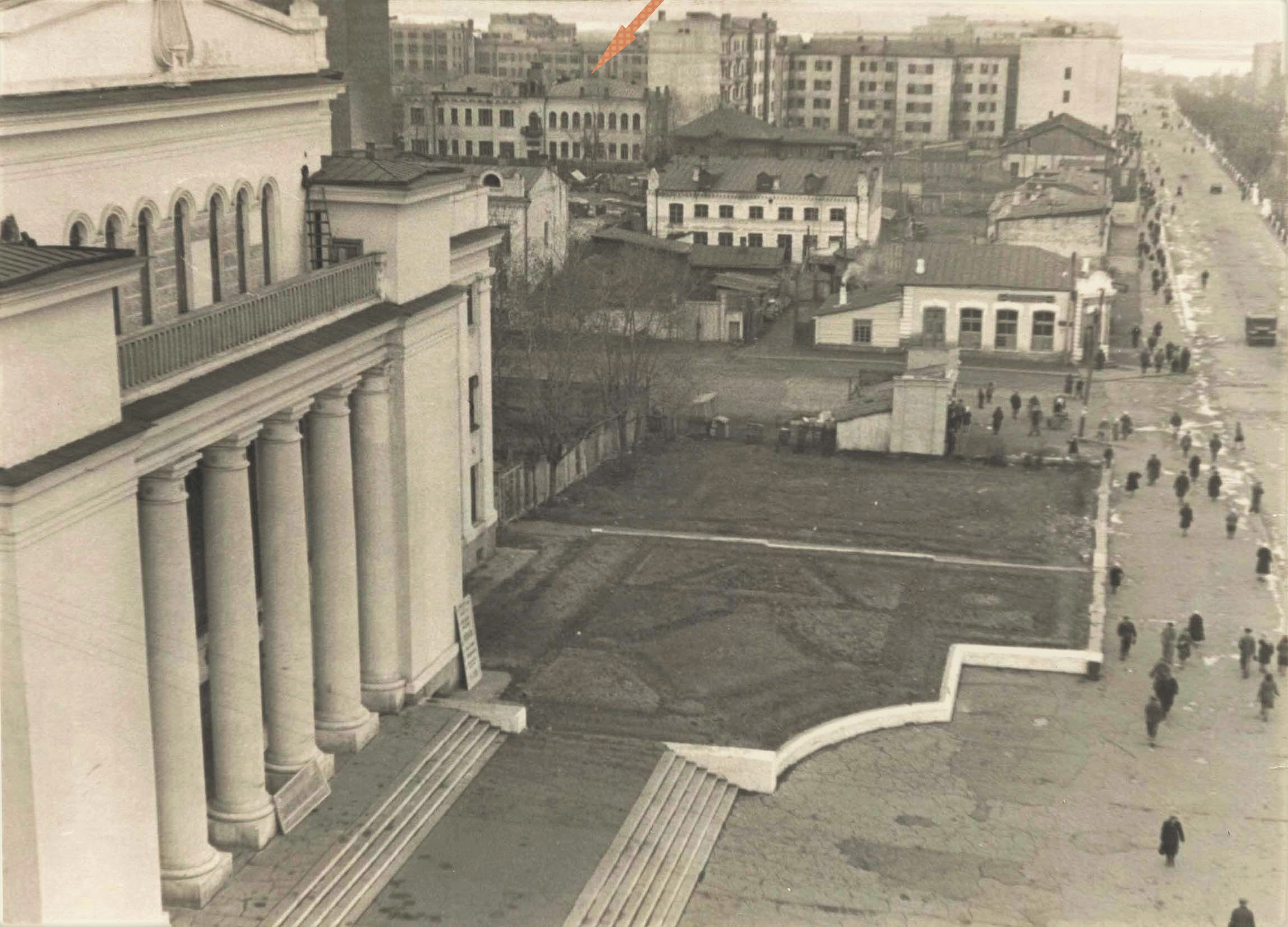 Предположу, что в снесённом старом правом доме находилась гостиница "Гранд-Отель".
