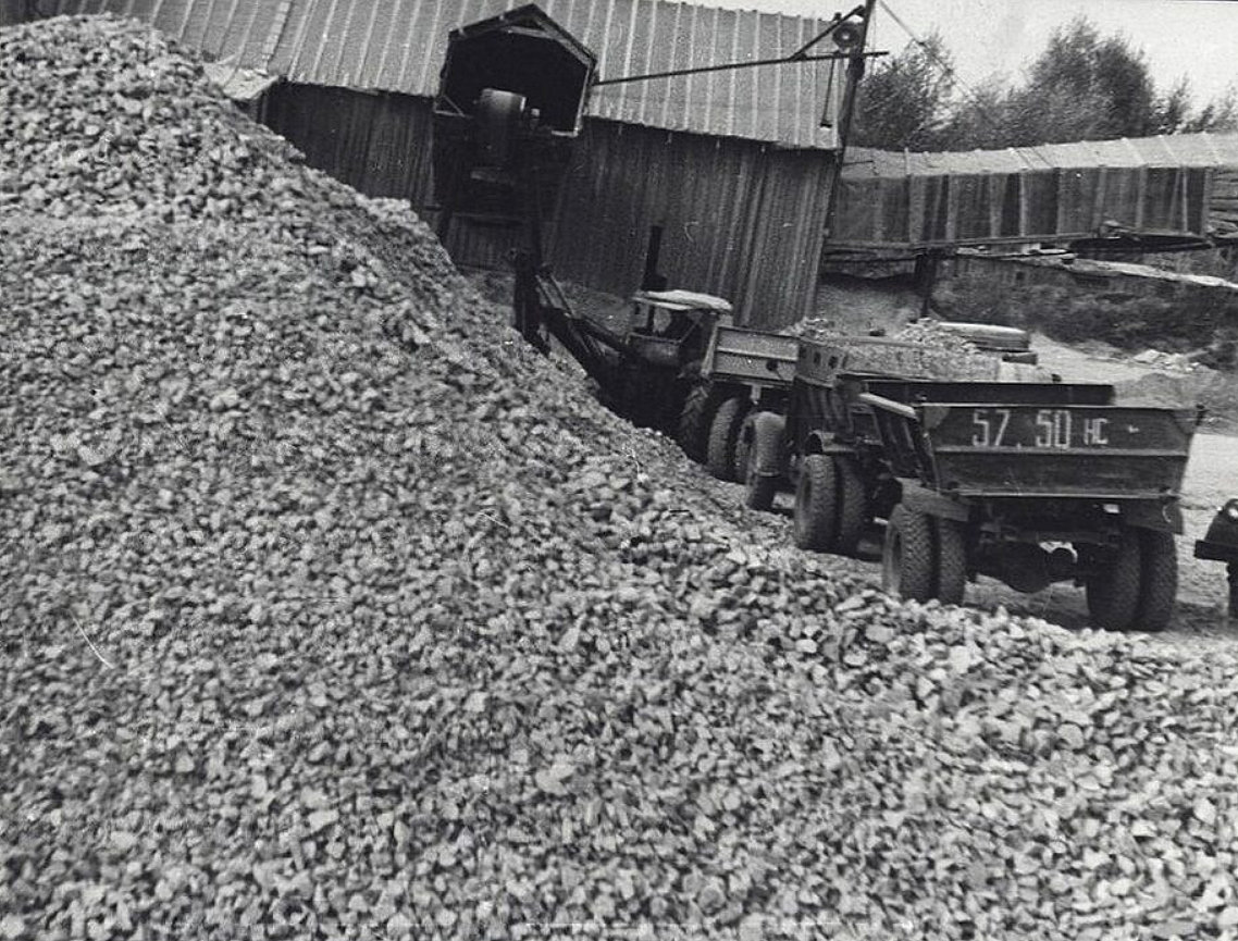 Карьер "Борок". Дробленый щебень перед погрузкой. 1972 год.