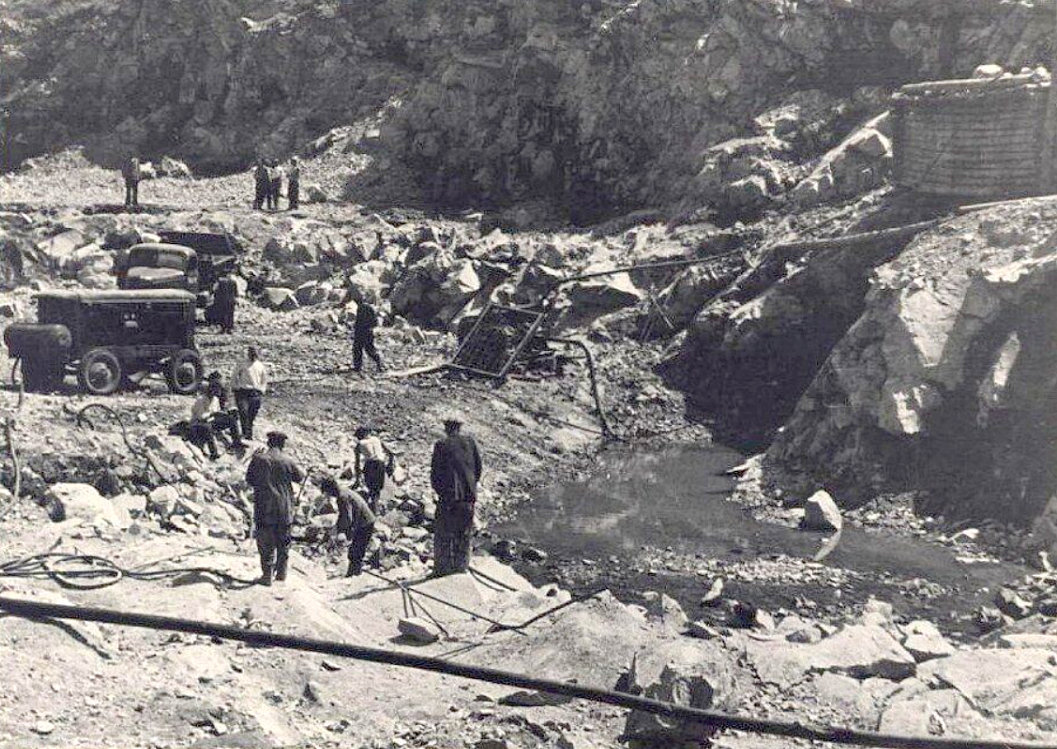 Также там написано, что в 1947-м старый котлован оказался затоплен, так как в карьере работы не велись в тот год (причина не указана).