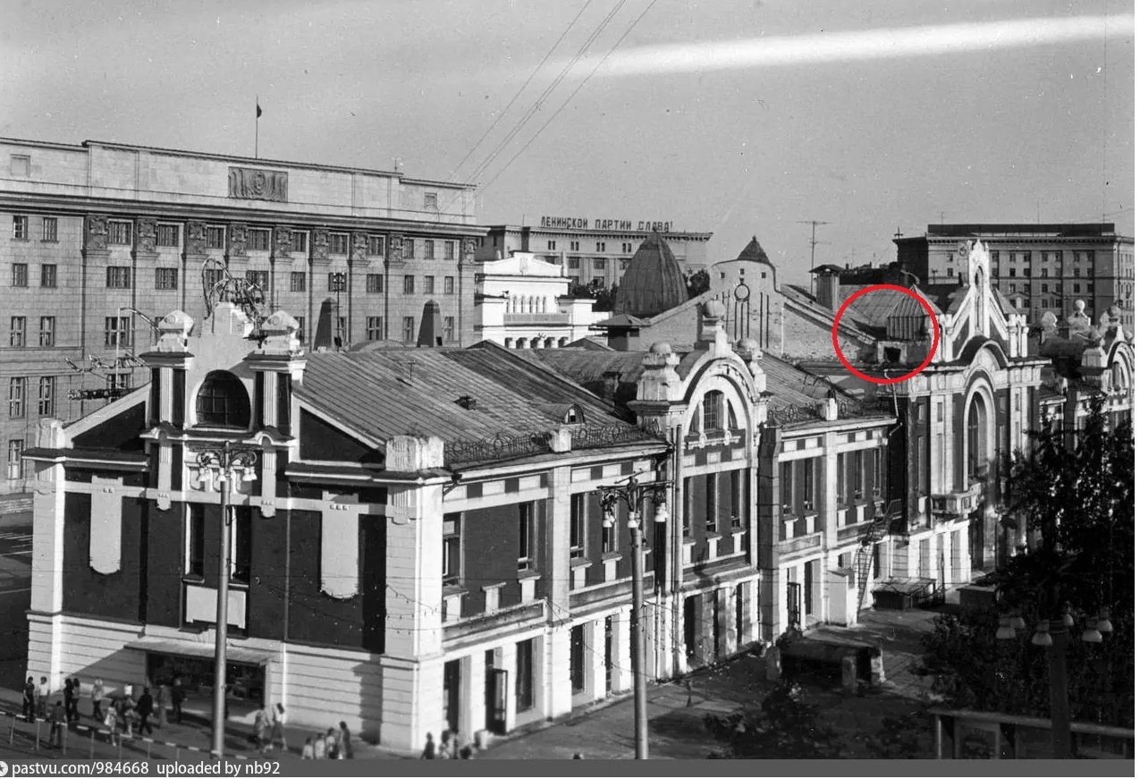 Сориентируйте , плиз , никак не могу привязаться к местности . Получается ,что на снимке место , где сегодня Сквер Героев Революции?