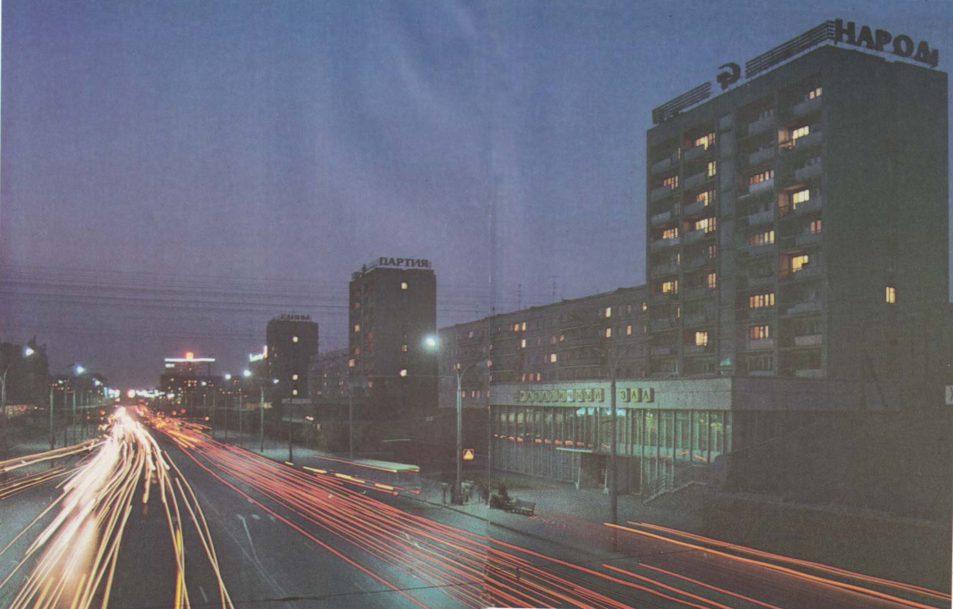 Помню, что, кроме светящейся вывески на Орлёнке, вроде, светилась длинная вывеска на задней пятиэтажке, которая на фотке не светится.